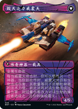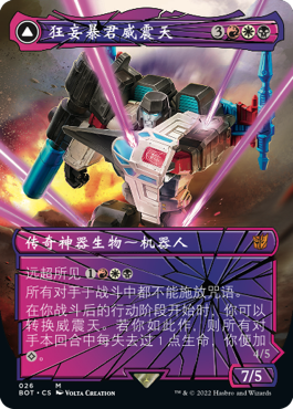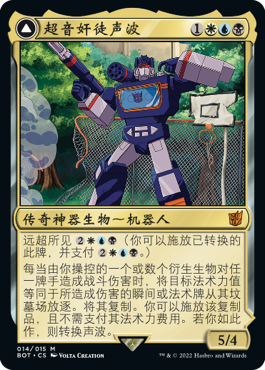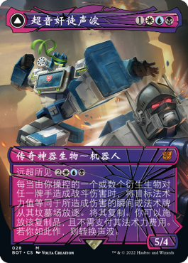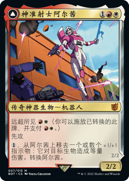 正如你所认识和喜爱的变形金刚一样,这些牌都可以从机器人变形为载具或替代形态,然后再次变形回原状。而借助远超所见异能,你可以让它们以替代的非机器人形态直接进战场!