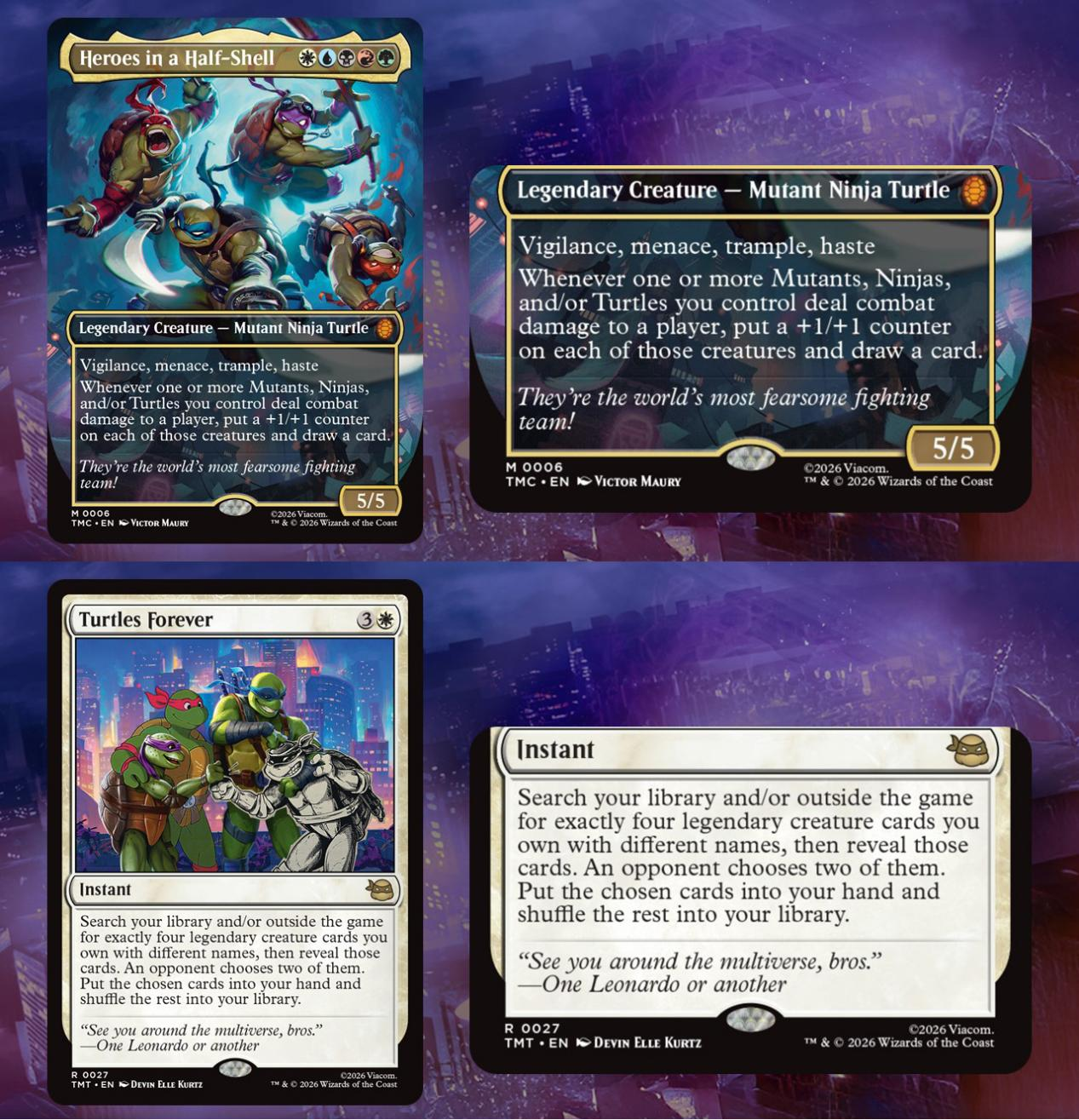 在周末的纽约动漫展中,尼克国际儿童频道与我们一起正式揭晓了万智牌无疆新宇宙的最新系列——Magic: The Gathering® | Teenage Mutant Ninja Turtles,该系列将携手4位忍者神龟,引领粉丝们进入万智牌的世界。如今,那些看着李奥纳多、多纳泰罗、拉斐尔和米开朗基罗的精彩冒险长大的玩家,可以与新一代的万智牌玩家分享这些故事了。该系列将于2026年3月6日正式发售。