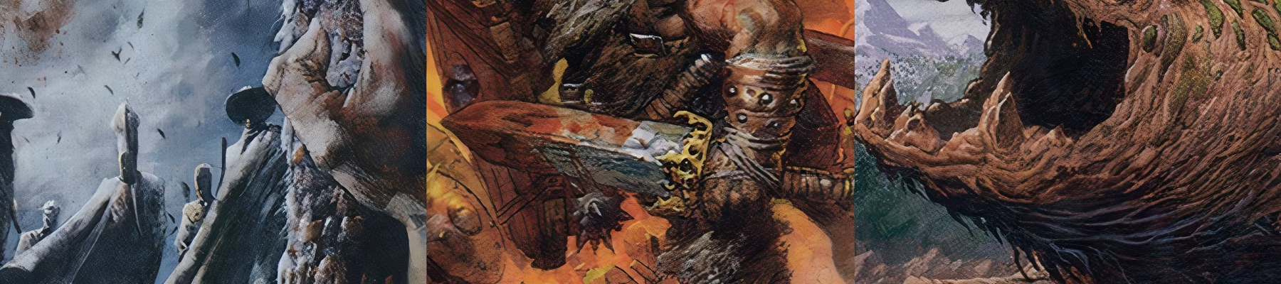 其次,我们大大放宽了循环的紧密程度。它们都改成了“在你的维持开始时,如果[某个条件],你赢得这盘游戏。”此外,胜利条件的门槛也改成了最酷的、能围绕它构筑套牌的任何条件。它们不必彼此相似。替代性胜利条件本身就足以将它们联系在一起。我还给了它们相关的名字和概念。(我负责奥德赛的牌名。)每张牌都是关于两个人之间的战斗。